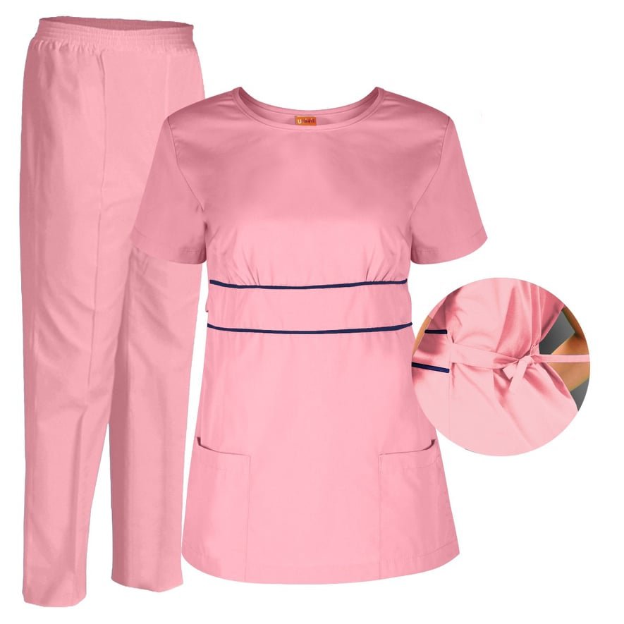 Women's Regular Scrubs Set Round-neck, 2 pocket , Top and Elastic Waist band straight Pants