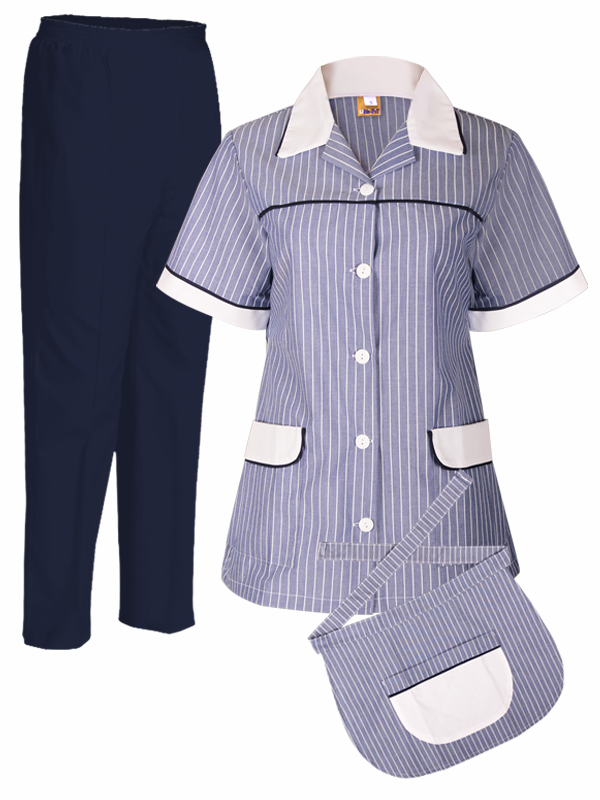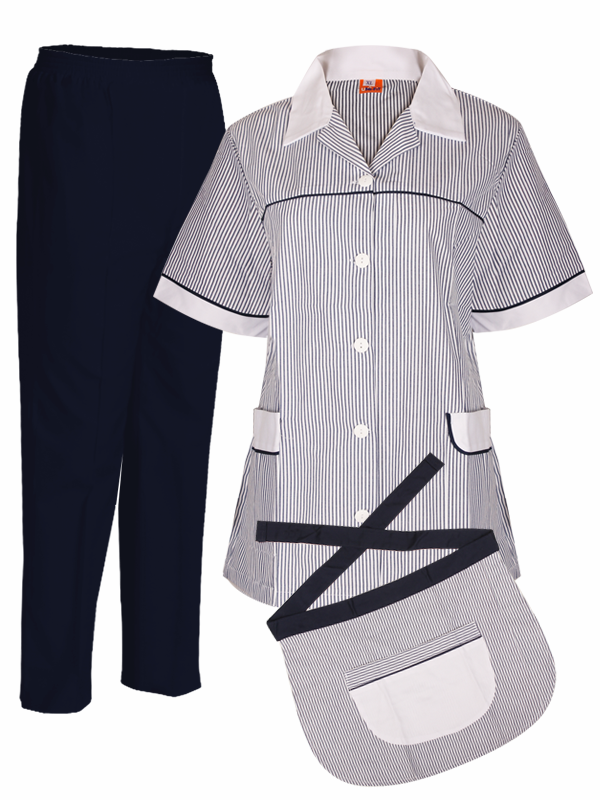 Women's Regular Maidset with Apron ,2 Pockets Top with Elastic Band Straight Pants