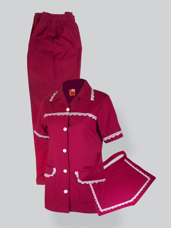 Women's Maidset With Apron with 2 Pocket on the Top and Fancy design with Elastic Band Straight Pants